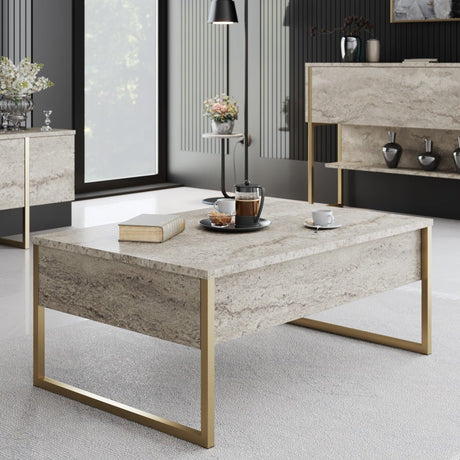 279,95Eenheid prijs /Niet beschikbaarRechthoekige Salontafel Travertijn Luxe 90x60 - Gouden Frame