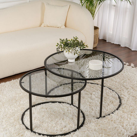 159,95Eenheid prijs /Niet beschikbaarModerne Ronde Salontafel Set van 2 Uru Zwart - Grijs Glas - 80/60 cm