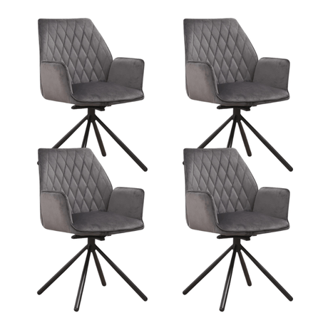 519,80Eenheid prijs /Niet beschikbaarSet van 4 Draaibare Eetkamerstoelen Novan Antraciet Velvet – 180° Draaibaar