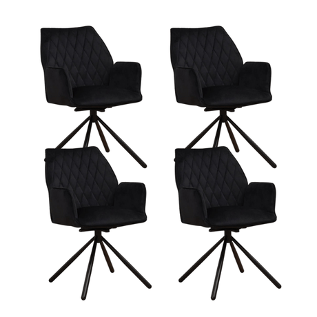 319,80Eenheid prijs /Niet beschikbaarSet van 4 Draaibare Eetkamerstoelen Novan Zwart Velvet – 180° Draaibaar