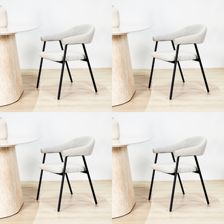 79,95Eenheid prijs /Niet beschikbaarSet van 4 Scandinavische Eetkamerstoelen Don Taupe Stof Kuipvorm - Met Armleuningen